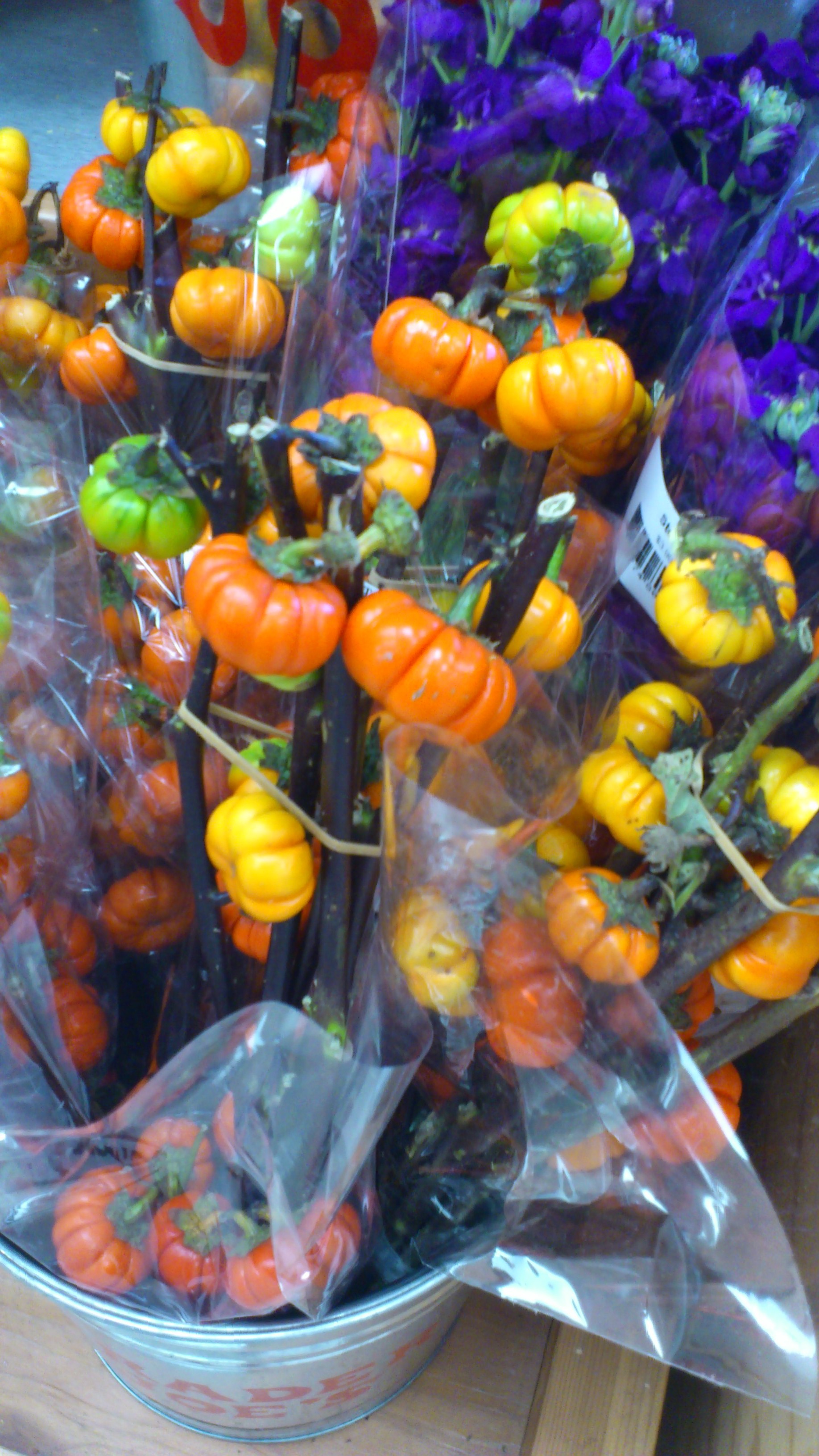 この時期、お店に並ぶ枝に付いた可愛いパンプキン
