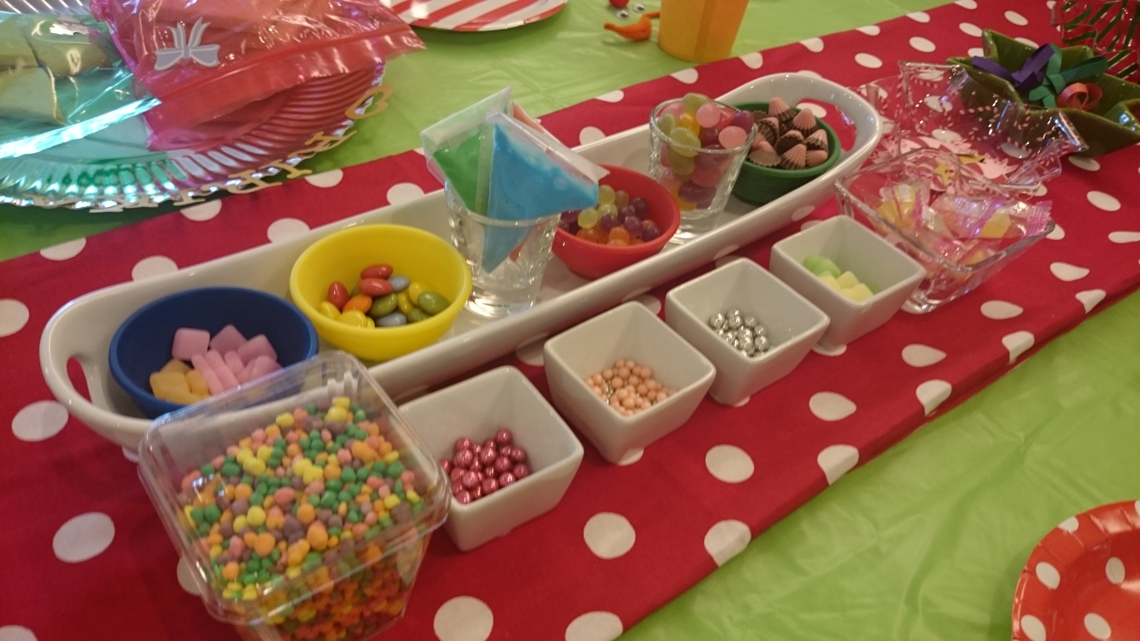 お菓子のお家用、デコレーションを並べてあります。